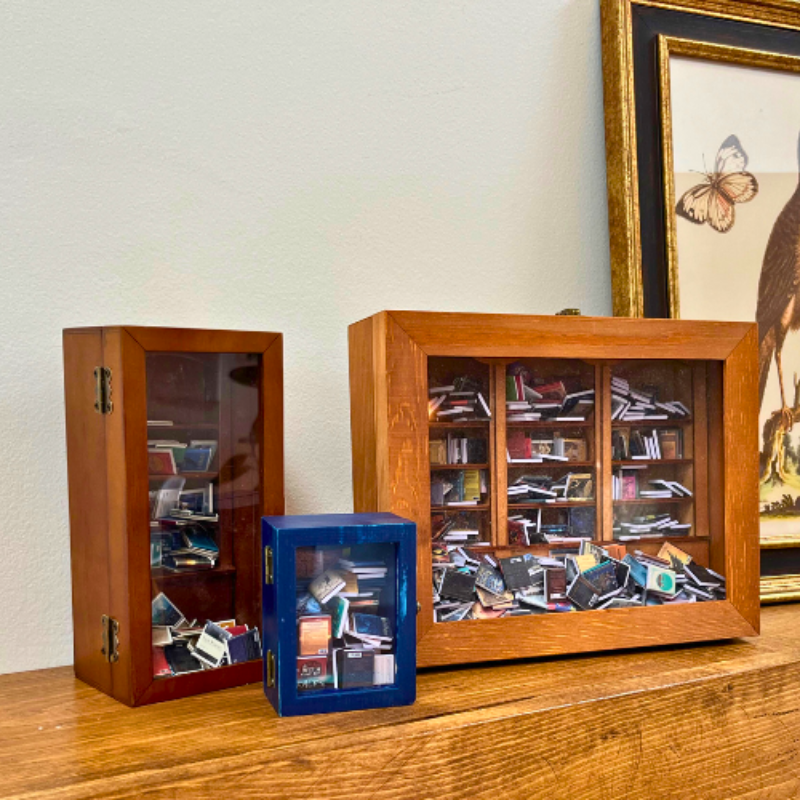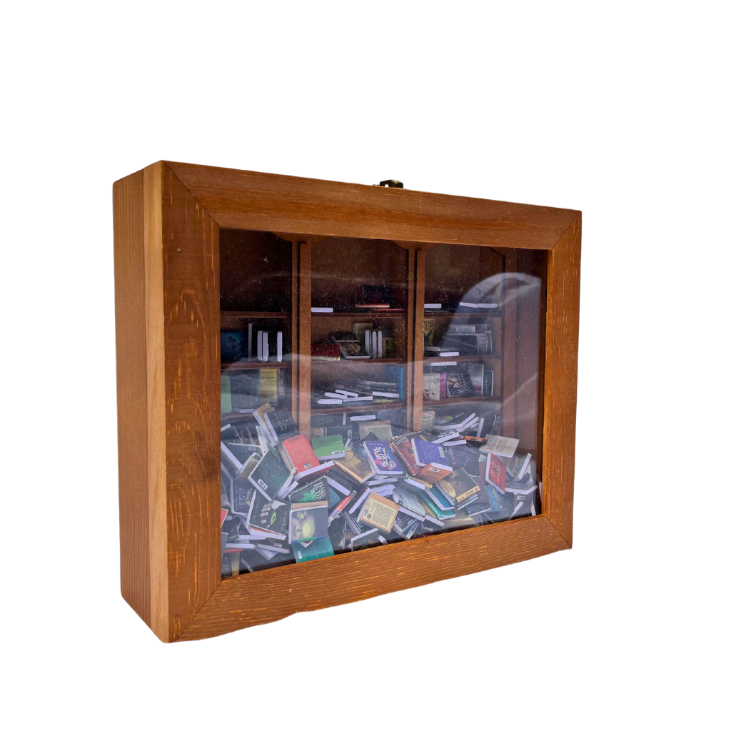 Η χειροποίητη ξύλινη βιβλιοθήκη μας είναι ένας ικανοποιητικός τρόπος για να μειώσετε το άγχος. Αφού τακτοποιήσετε τα μίνι βιβλία σας, κλείστε τη θήκη και γυρίστε το μάνταλο. Όταν το άγχος επιστρέψει, απλά κουνήστε τη βιβλιοθήκη για να ανακατέψετε τα πάντα και ξεκινήστε πάλι από την αρχή :)